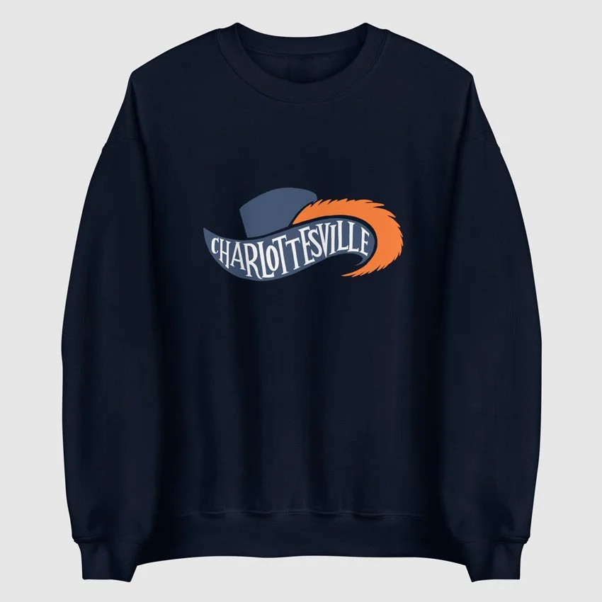 Charlottesville, VATradition Around Every Corner Charlottesville Hoodie3 Colors$55 Charlottesville T-Shirt3 Colors$35 Charlottesville Crewneck3 Colors$50 Charlottesville Dad Hat2 Colors$35 Charlottesville Long Sleeve Tee4 Colors$45 Charlottesville Eco Tote Bag2 Colors$35