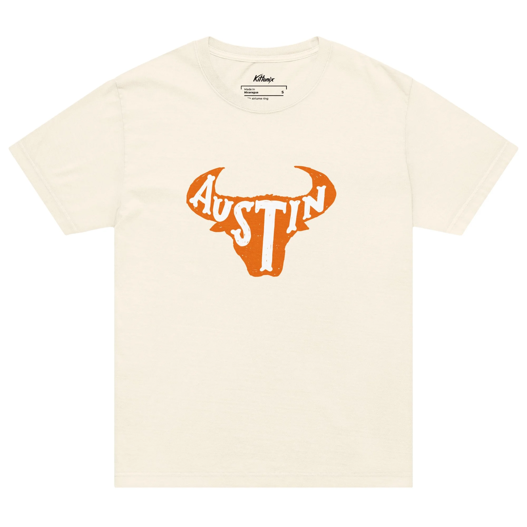 This Austin heavyweight tee features a bold longhorn graphic that pulls straight from University of Texas culture, the kind of design you’d wear heading to class, tailgating near the stadium, or walking back through West Campus. It’s direct, familiar, and rooted in Longhorn identity without overdoing it.