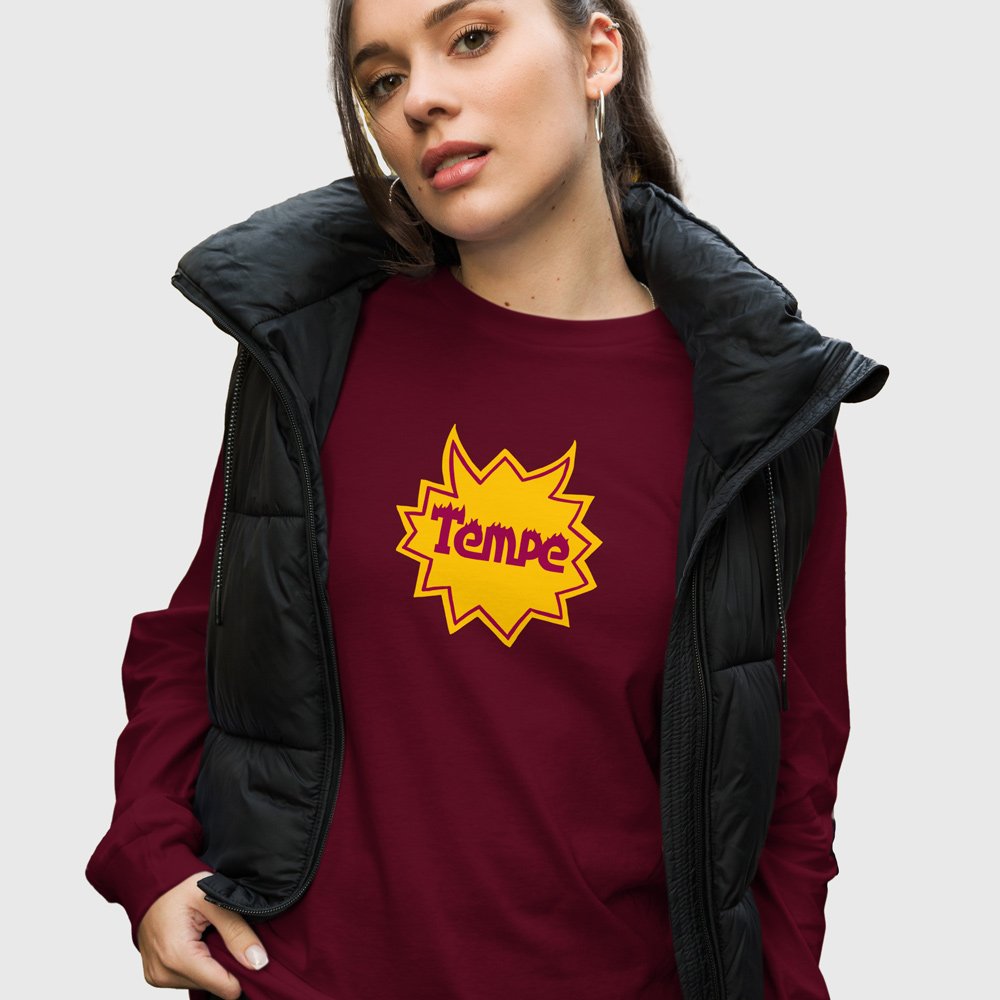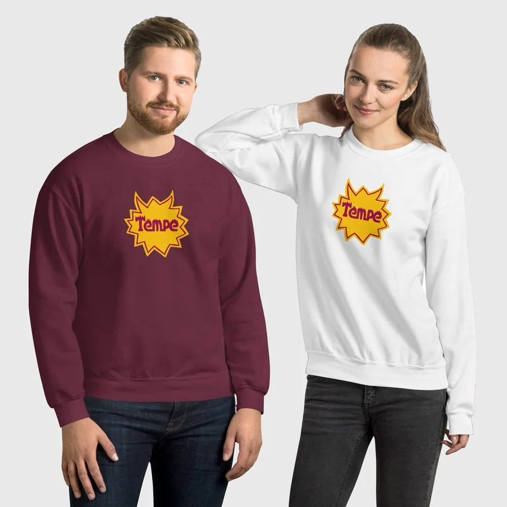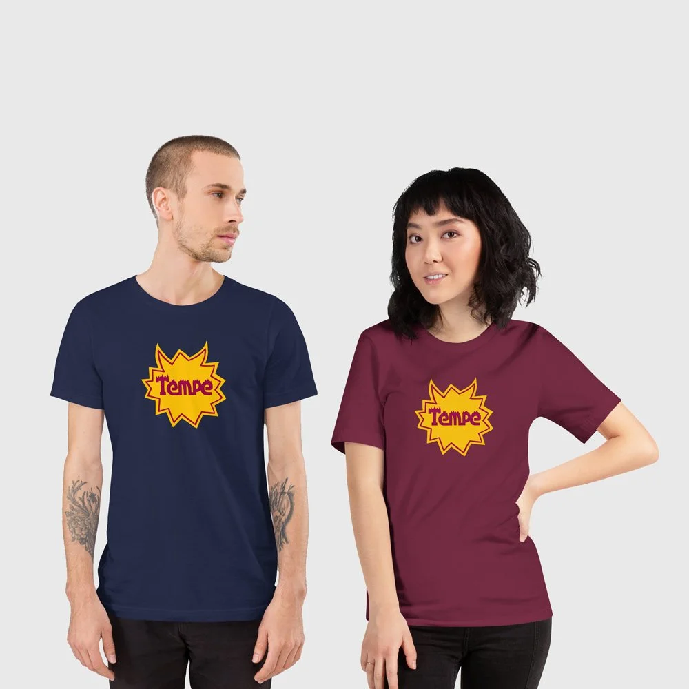 From sunrise hikes at “A” Mountain to late nights on Mill Ave, Tempe is a town that runs hot - on sunshine, school spirit, and just the right amount of chaos. This design captures the pulse of ASU, where the desert meets the party and the pride runs deep.